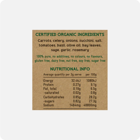 PLEASE NOTE: This is a vegetable stock, not a bone broth. This is not to be used in-between meals, this will break a fast. This product is to use for AstonRX recipes only. Deliciously tasty vegetable stock is made with nothing but pure organic vegetables, Himalayan rock salt and organic extra virgin olive oil. No hidden ingredients for flavour like MSG, and that salt is the only preservative we use. This vegetable stock is rich, nourishing, hearty and jam packed full of flavour. We use only the very best, certified organic ingredients available to us, ensuring that you get the maximum amount of vitamins and nutrients possible. Vegetable stock makes a brilliant base for many vegetarian recipes, plus, it’s vegan. To make our organic vegetable stock, we start with the freshest and yummiest carrots, celery, onion, garlic, tomato and zucchini, combining them with Himalayan rock salt, fresh herbs and spices. We draw out all the goodness of the veggies, along with the aromas and flavours of the herbs and spices. PLEASE NOTE: This is a vegetable stock, not a bone broth. This is not to be used in-between meals, this will break a fast. This product is to use for AstonRX recipes only.Regular price AUD$16.50Sale price AUD$16.50 Regular priceUnit price per -